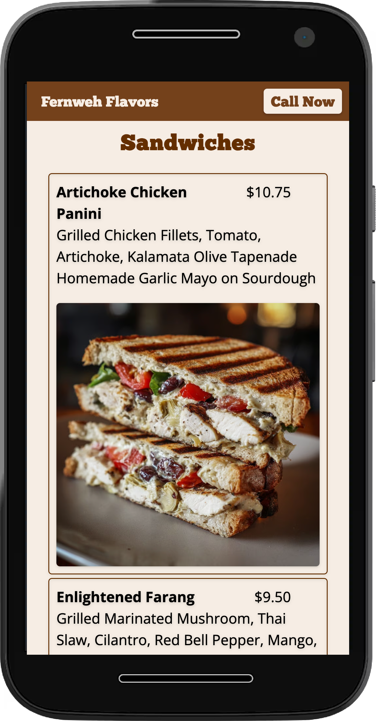Lightning-fast, mobile-optimized menu website converts searches to call-in orders. Make it easy as possible to get the information and options people are searching for.